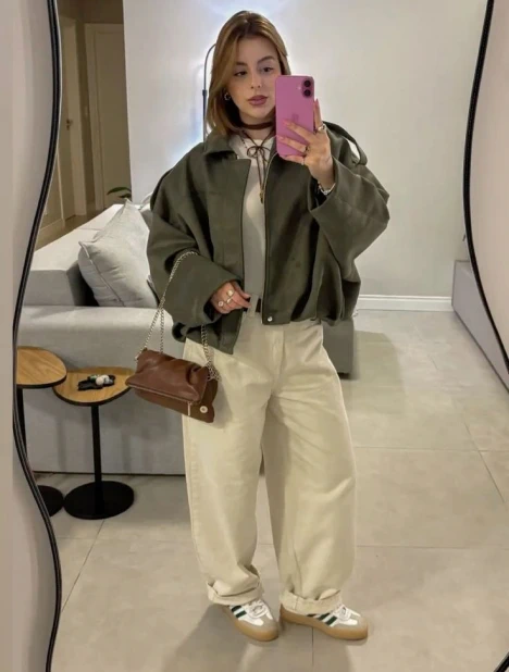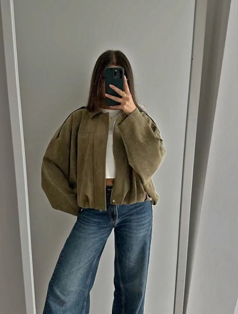 استایل کژوال زنانه با بامبر جکت اورسایز