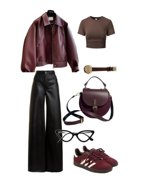 استایل خیابانی با بامبرجکت چرم زرشکی
