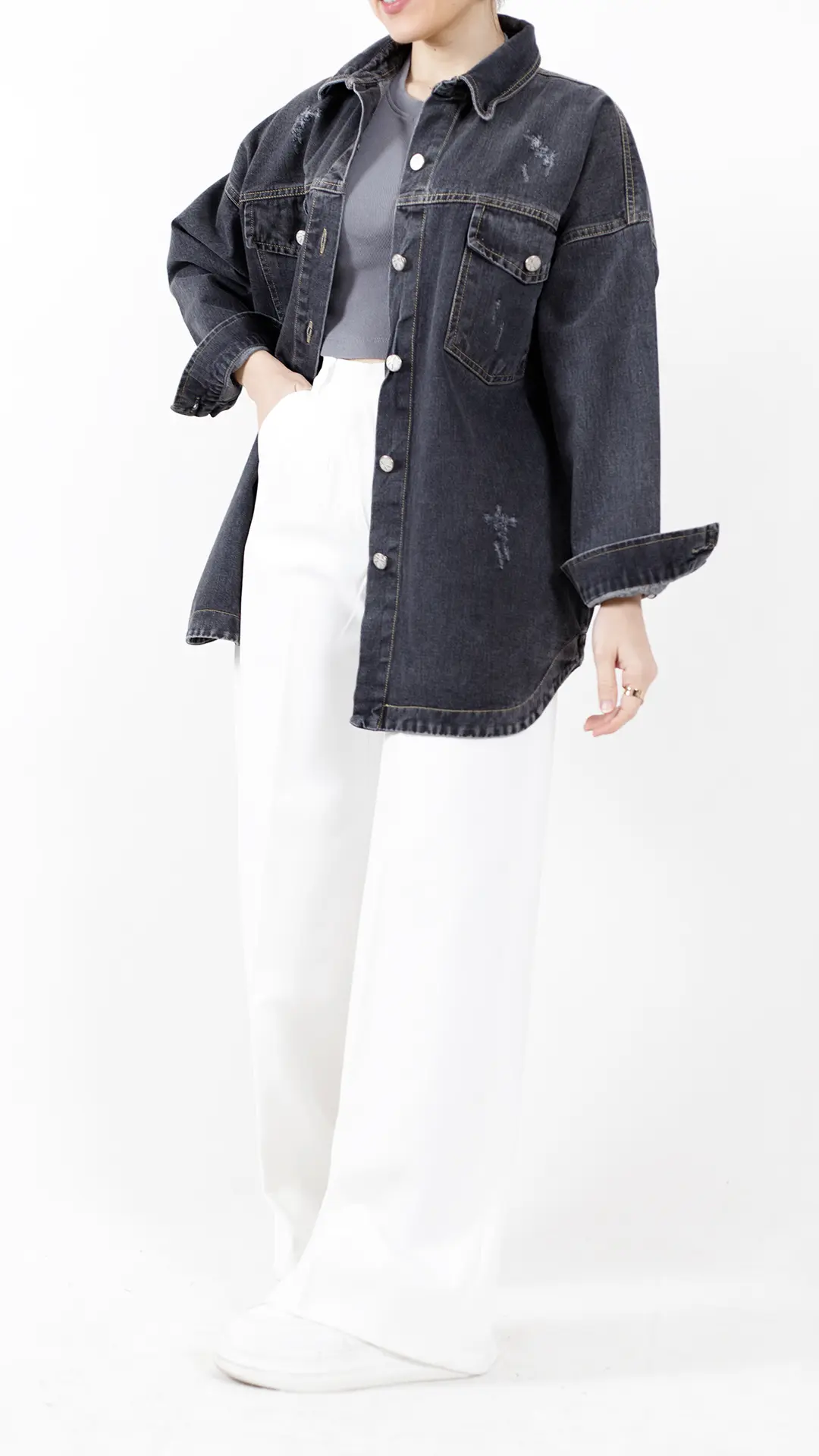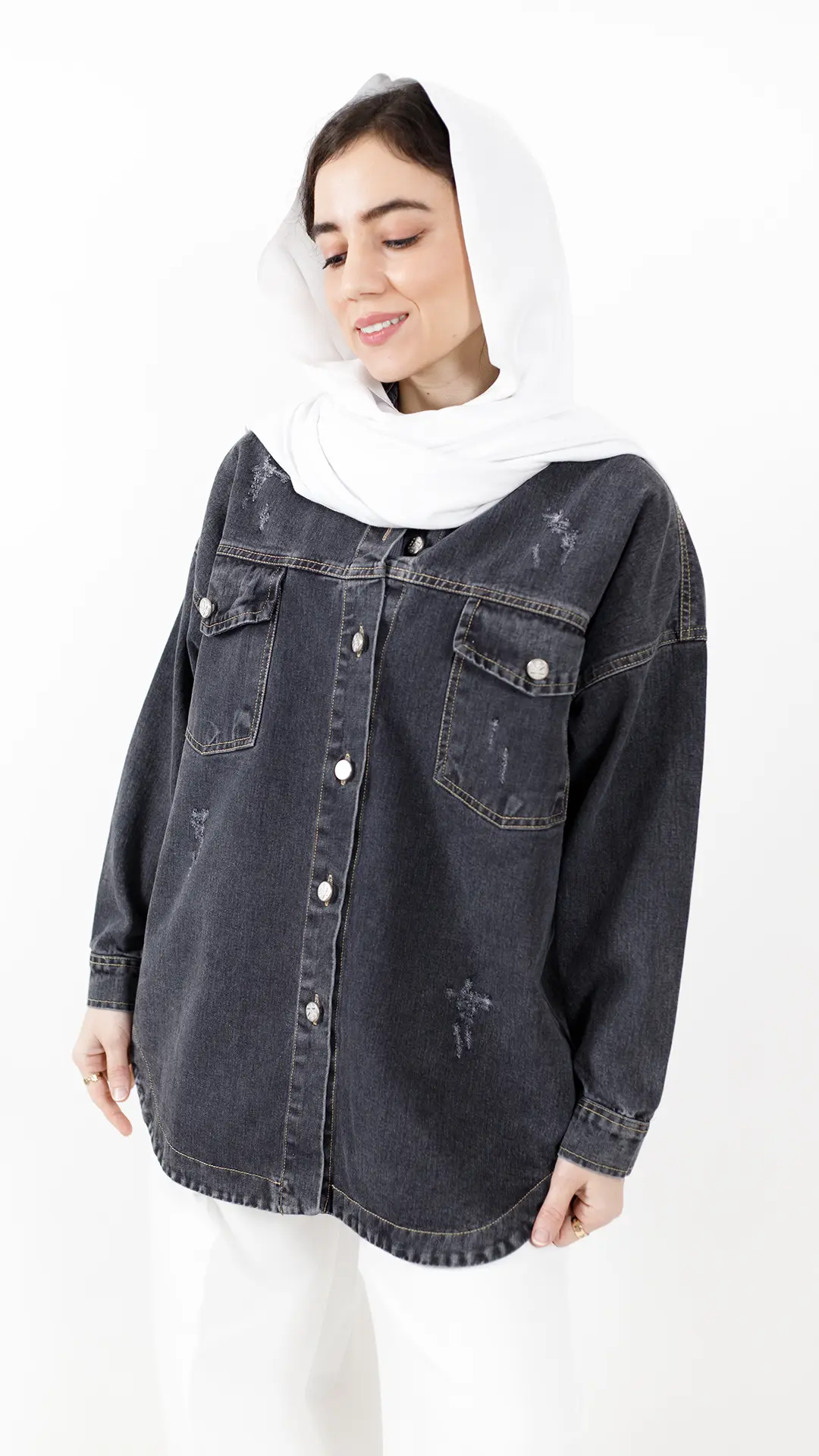 شومیز جین جیب دکمه دار