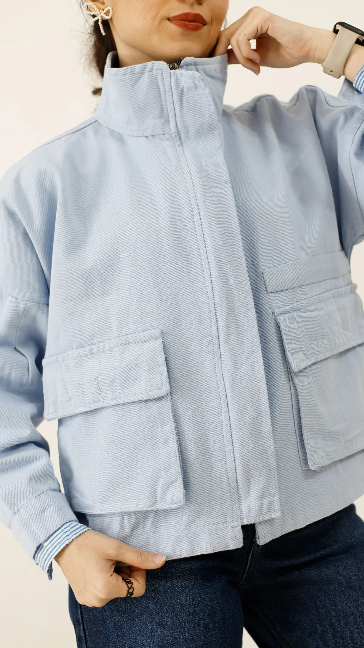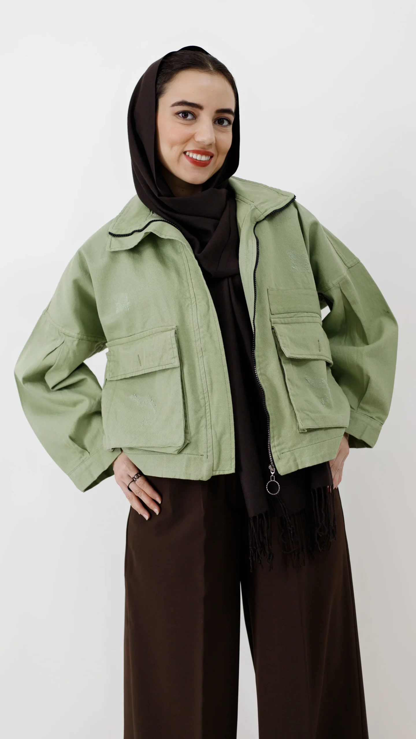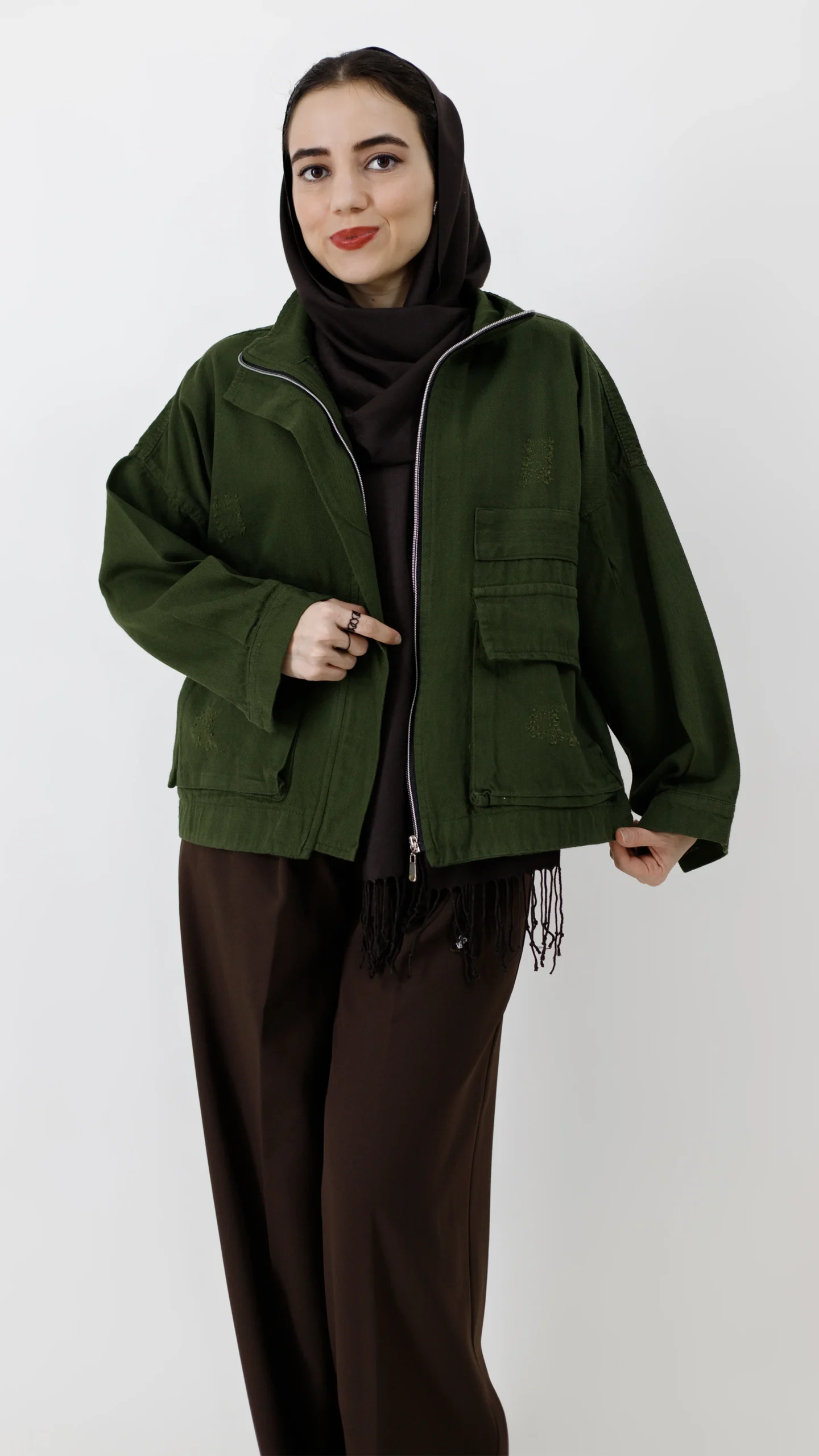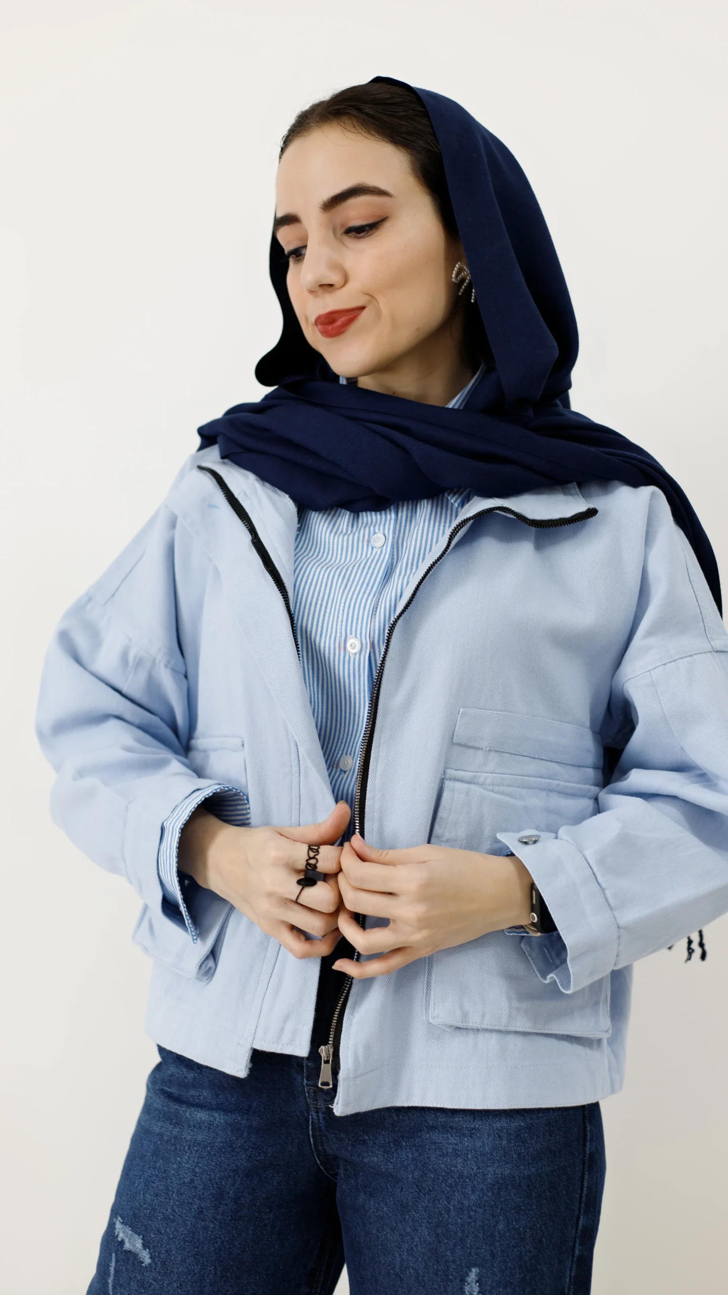 کت جین در دو رنگ با طرح سوزن دوزی جلوی کار