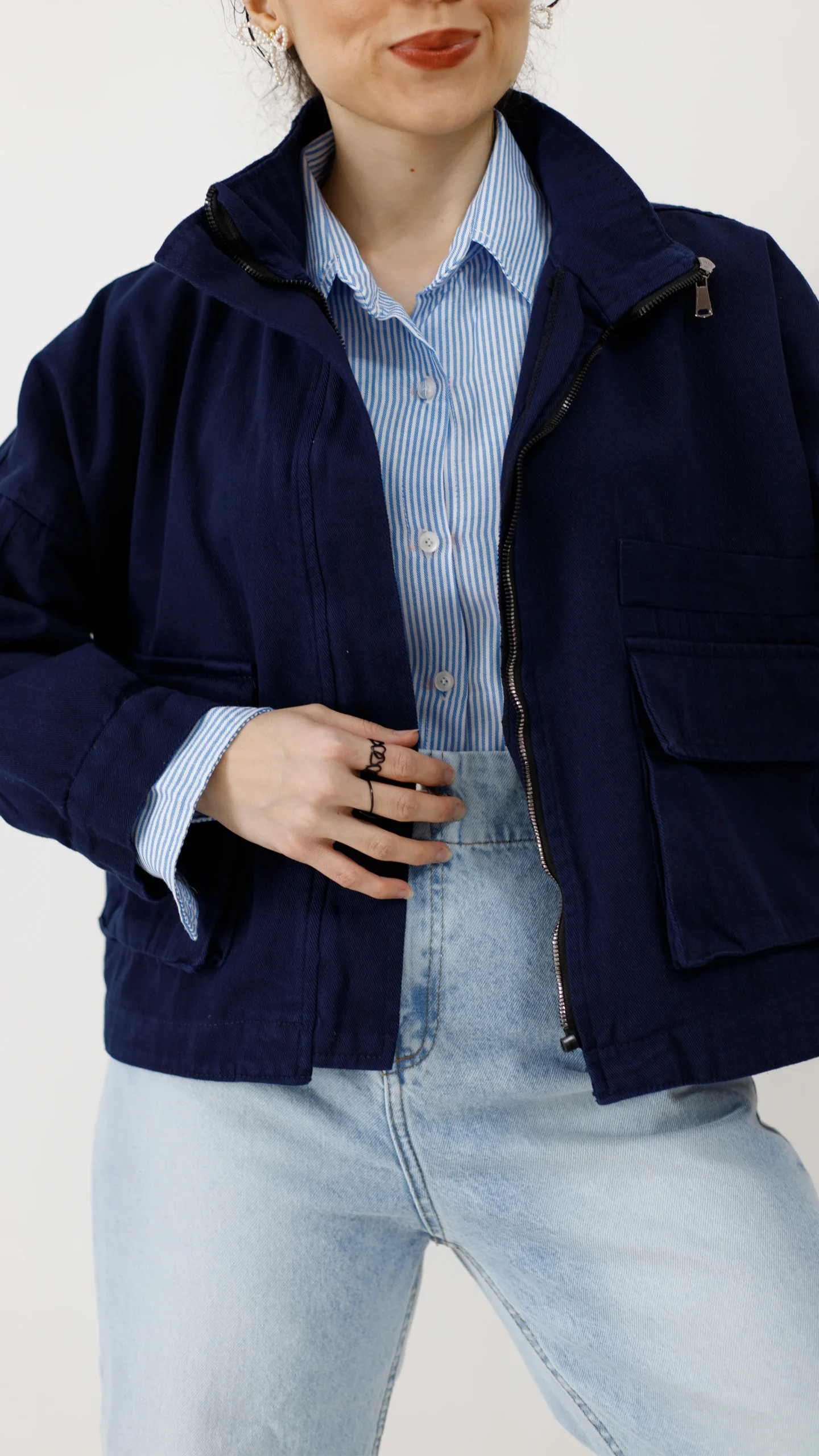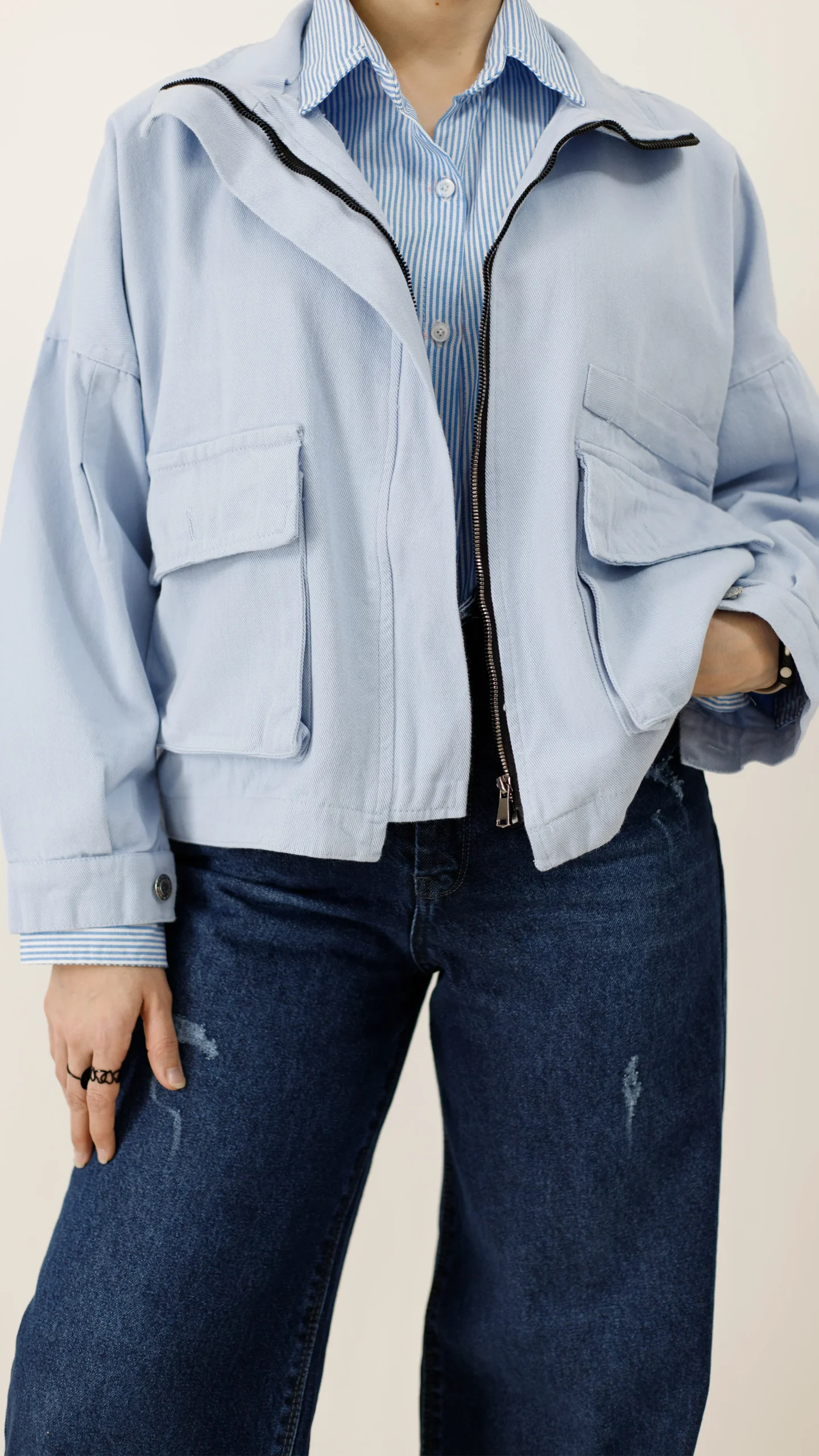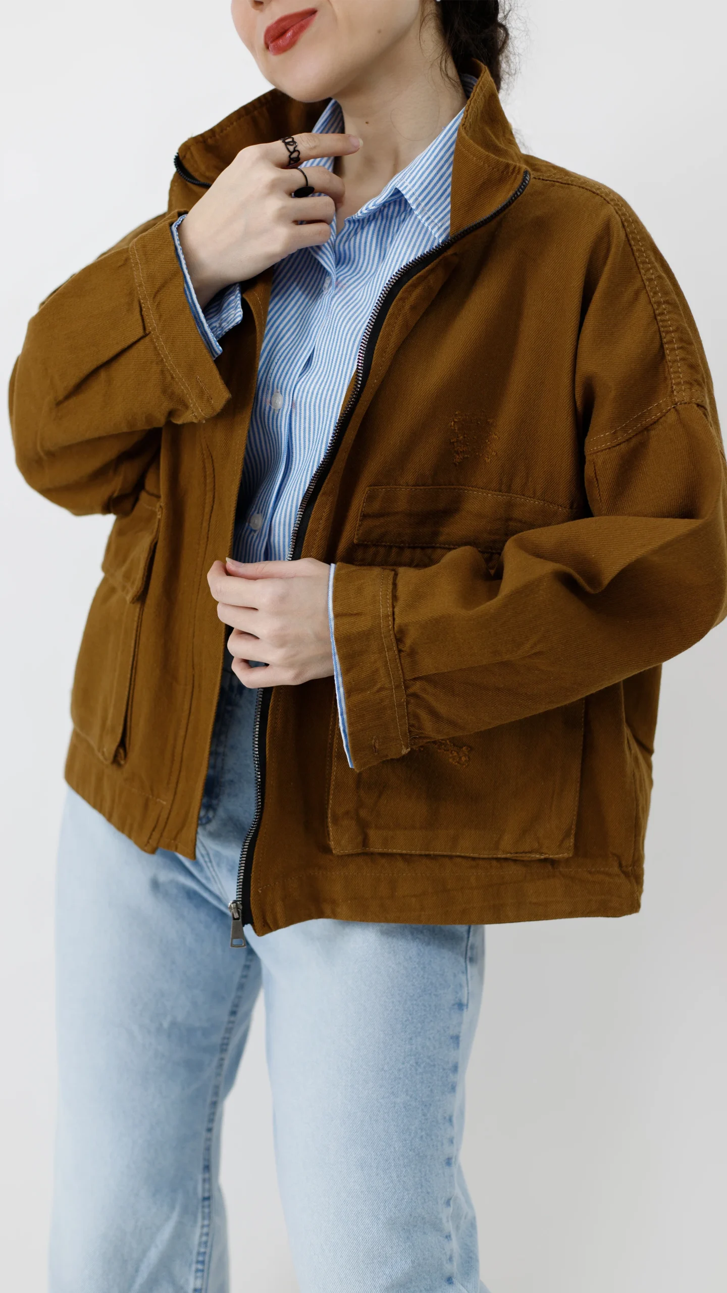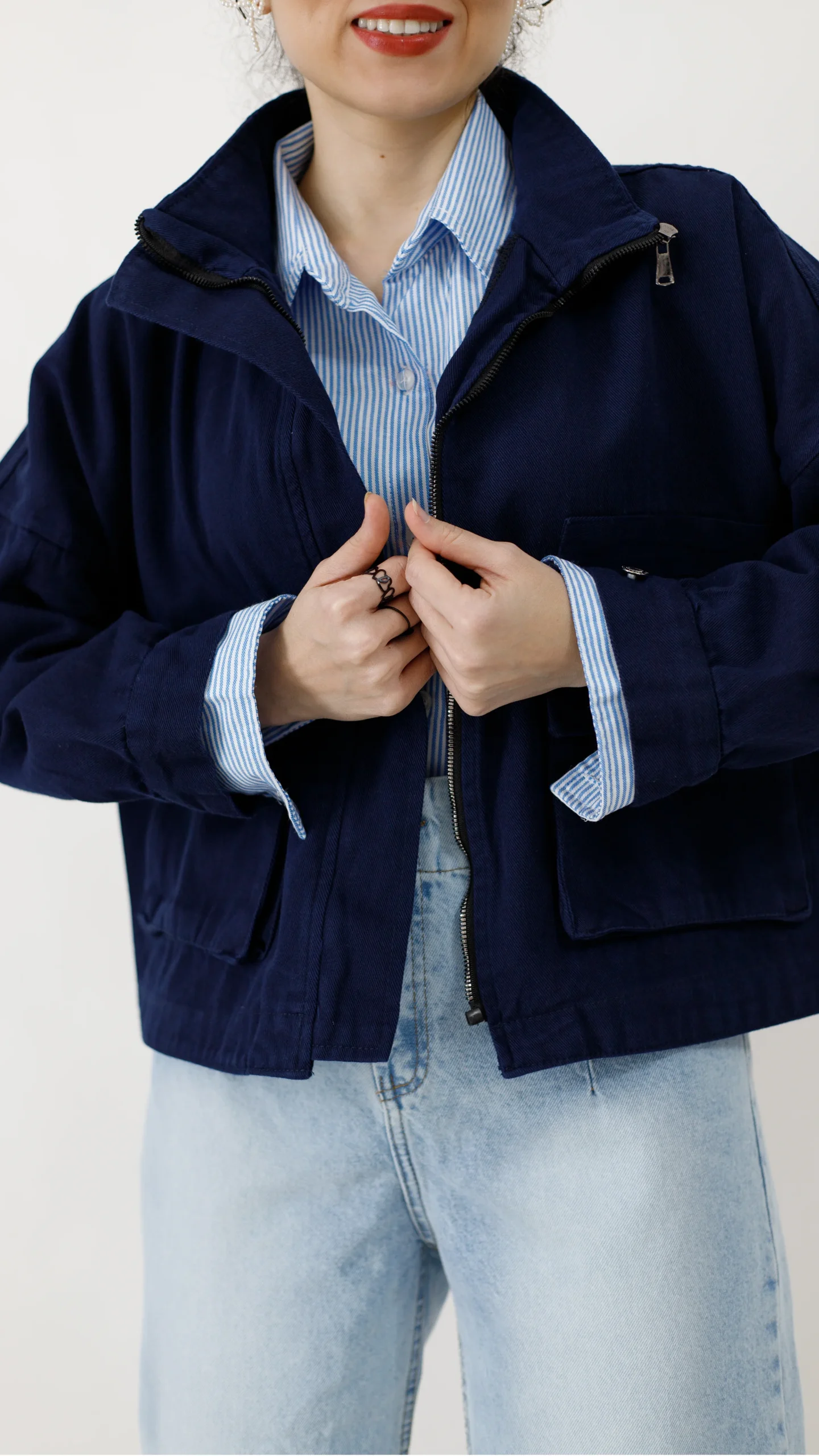 کت جین در دو رنگ با طرح سوزن دوزی جلوی کار