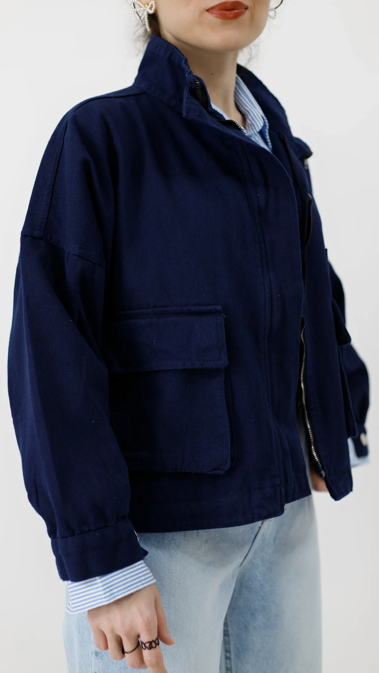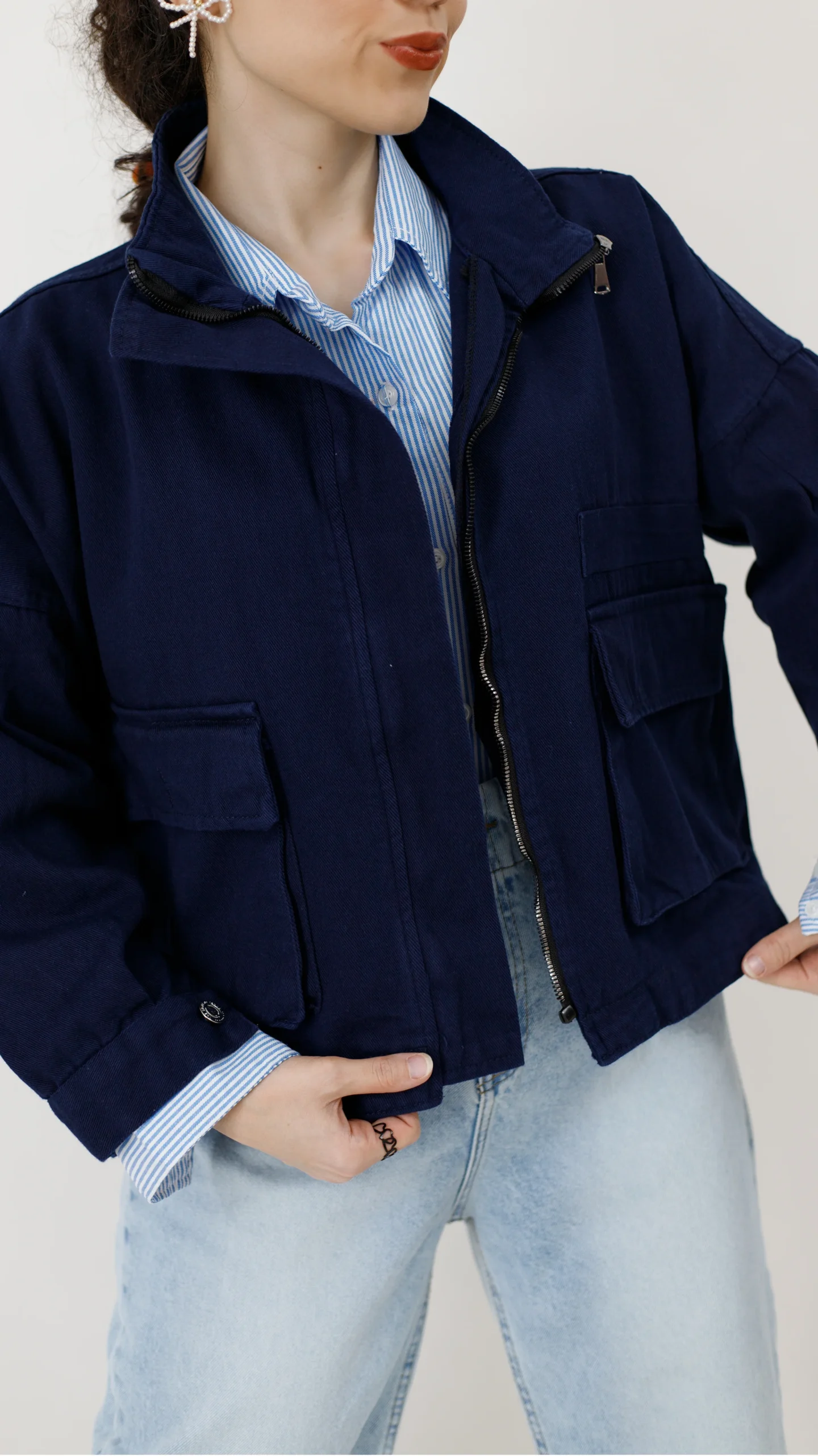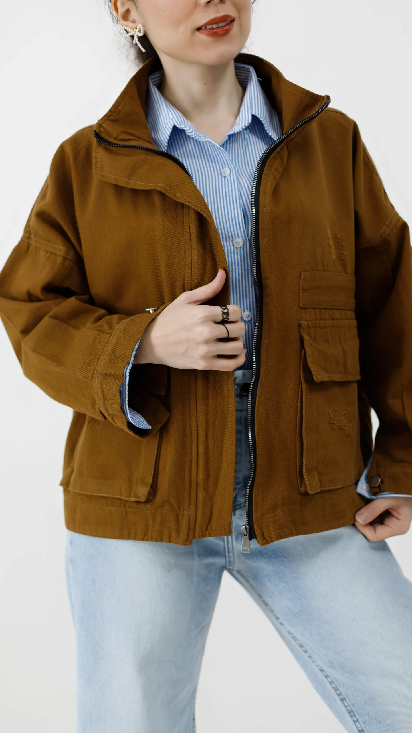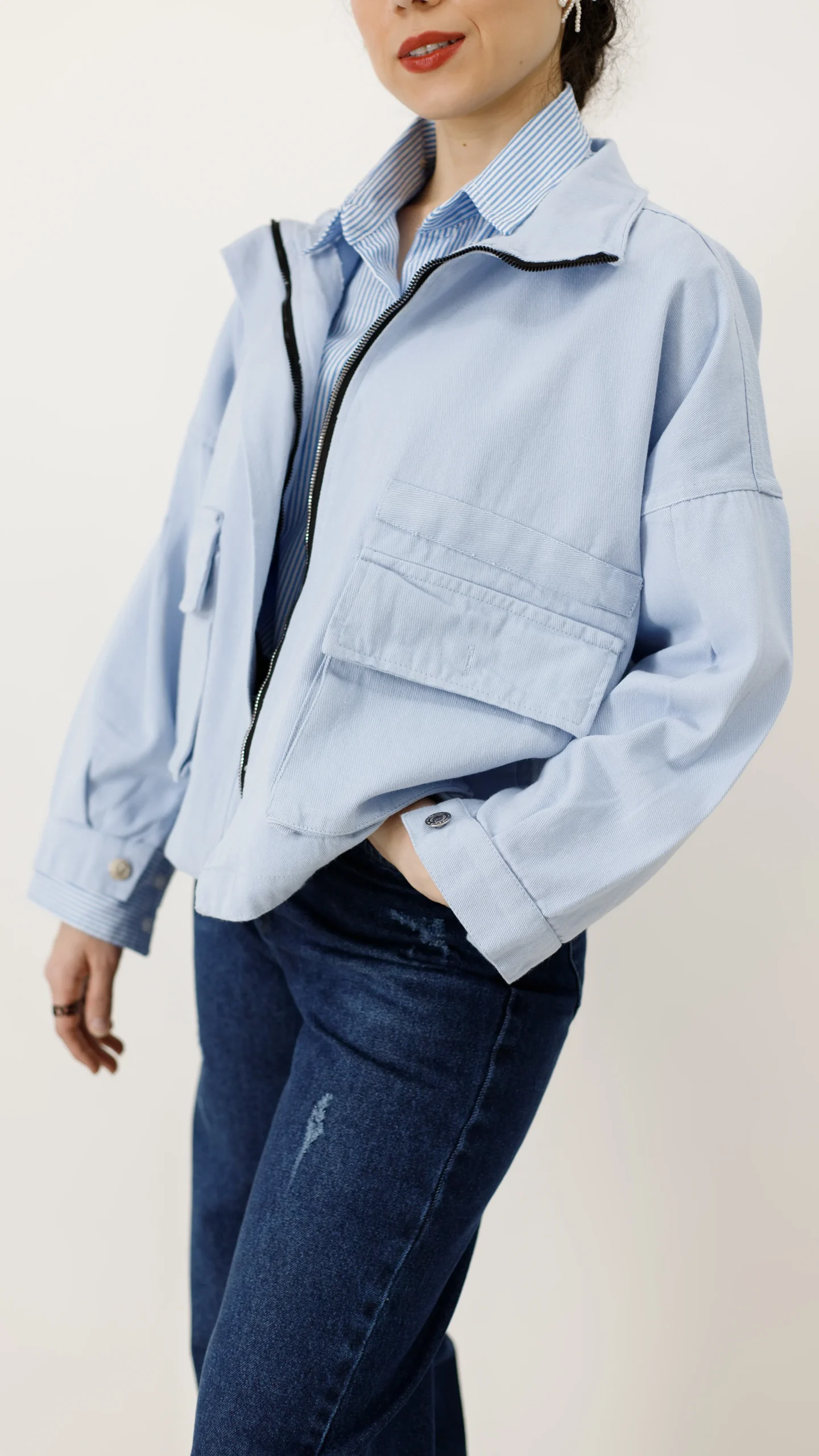 کت جین در دو رنگ با طرح سوزن دوزی جلوی کار