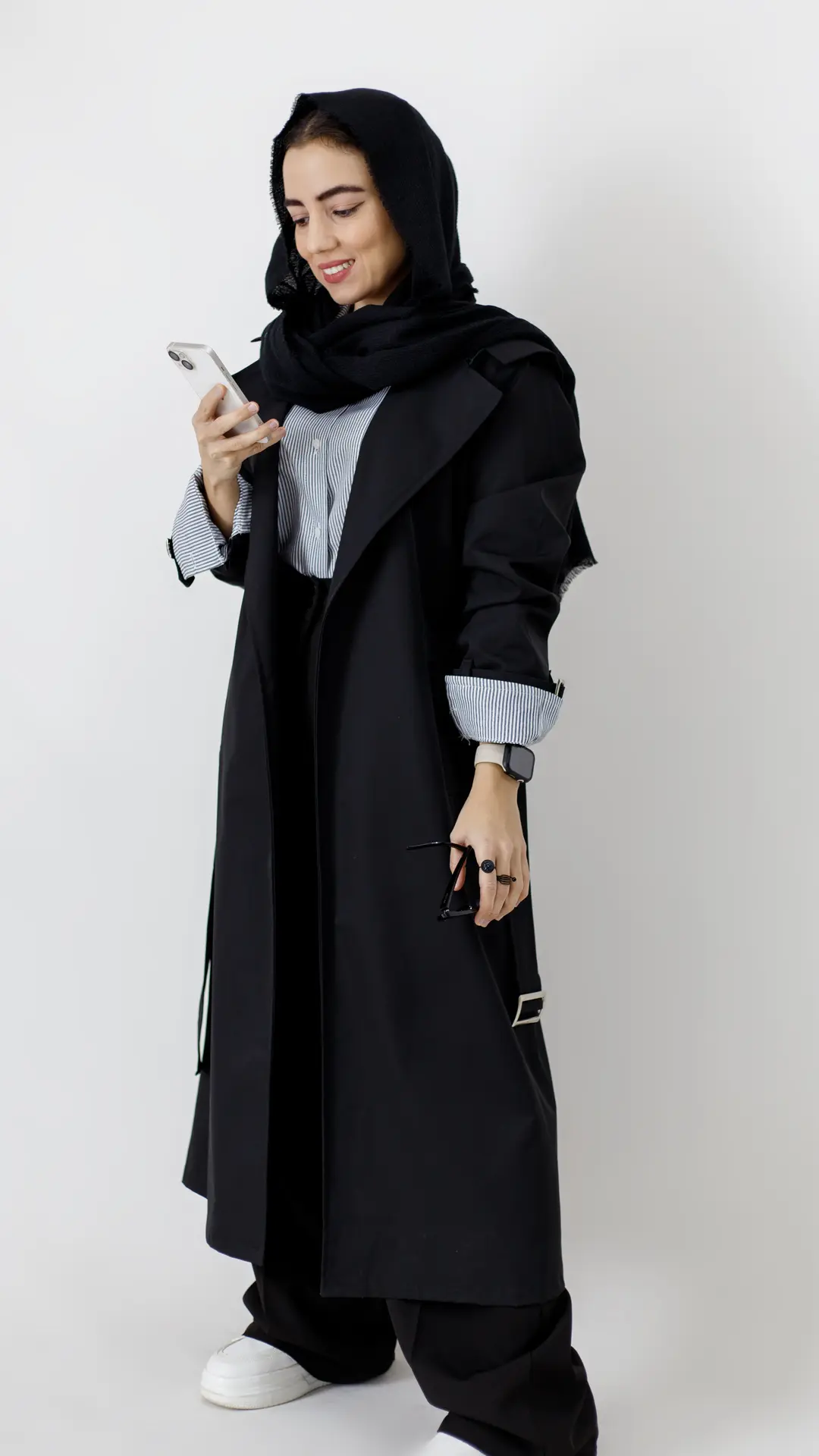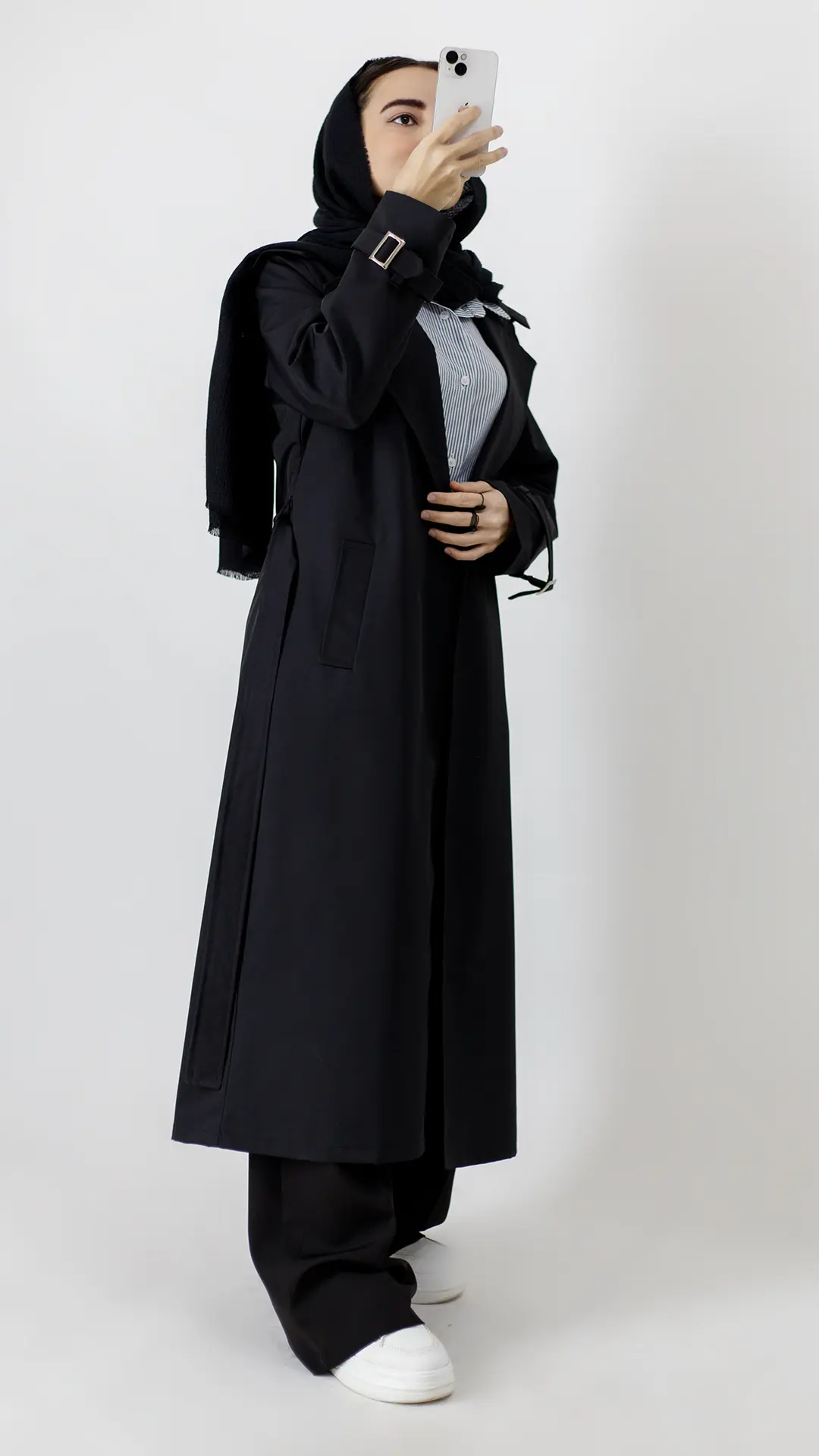 بارونی بلند آستردار مشکی، از اون آیتمهای کاربردی و ماندگاره که همیشه باید توی کمدت باشه.