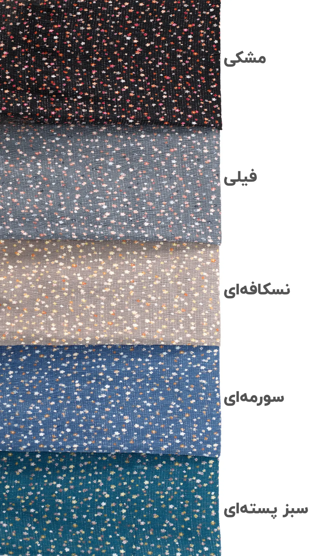 | رنگ | آبی آسمانی, سبز پسته ای, سبز ماچا, سرمهای, صورتی, صورتی پررنگ, فیلی, کرم استخونی, مشکی, موکا, نسکافه ای |