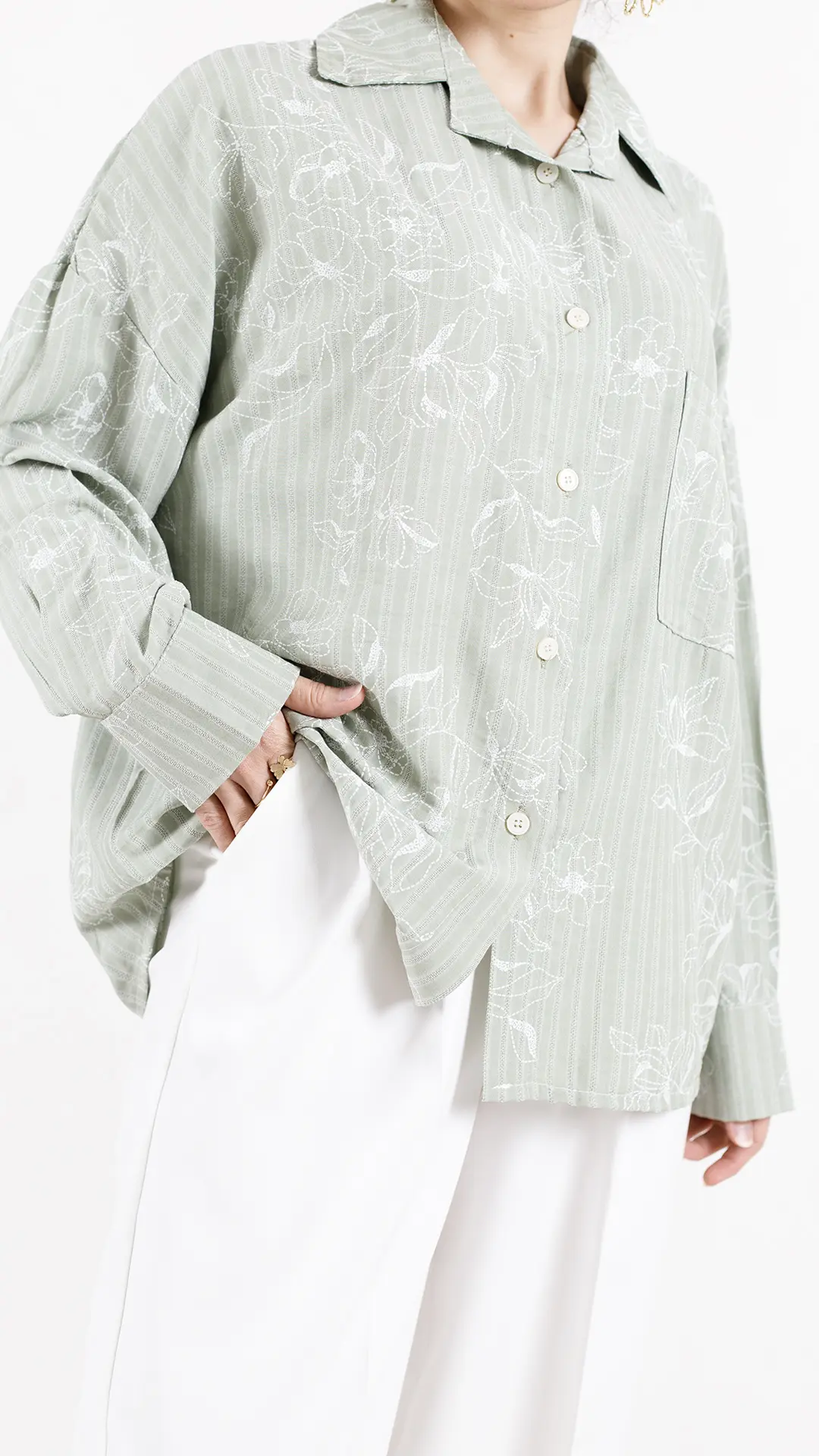 آستین اش بند و دکمه داره که میتونید تا بزنید و دکمه کنید