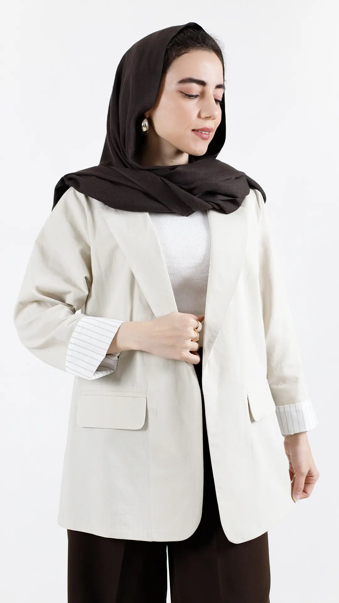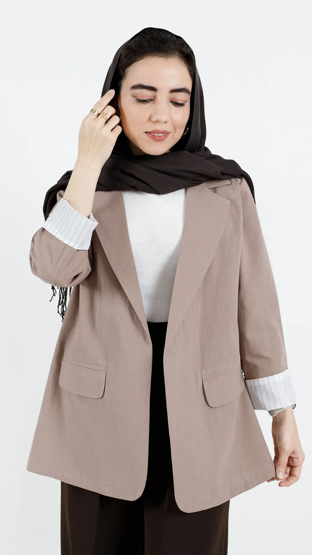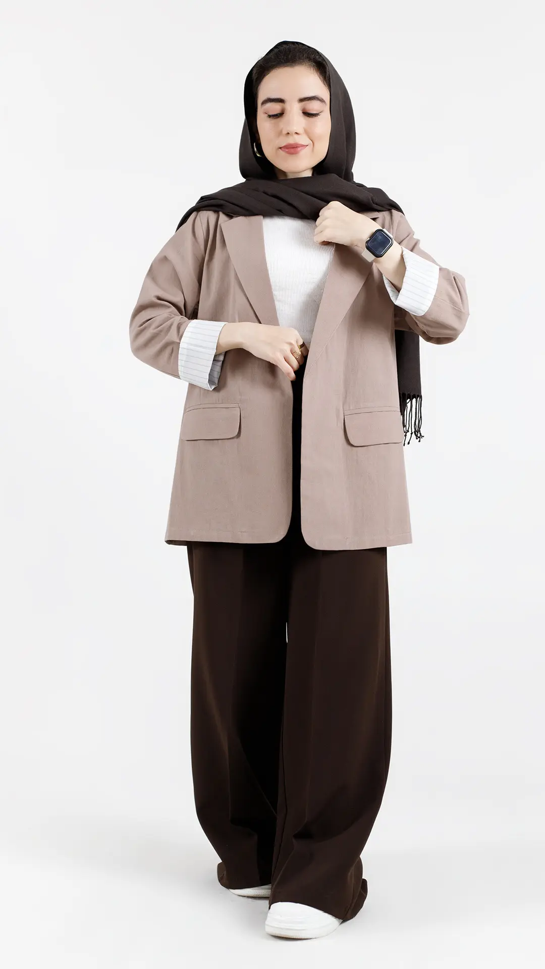 کت آستردار پاییزه با جنس کتان کجراه، یه انتخاب خاص برای روزای خنک پاییزه 🍂