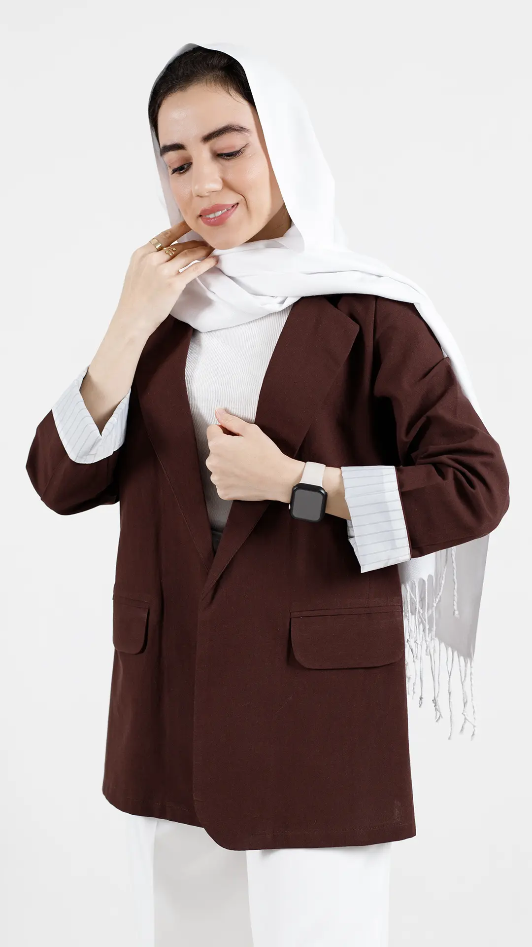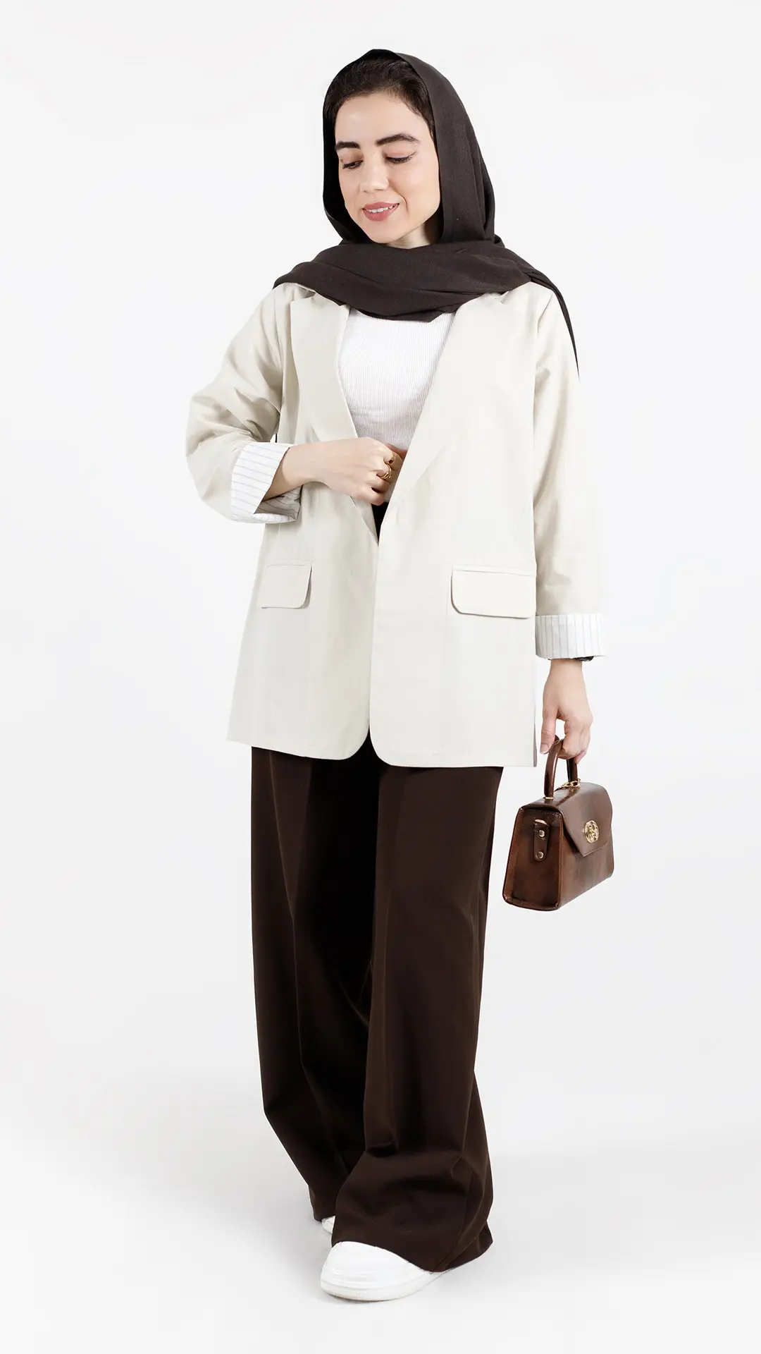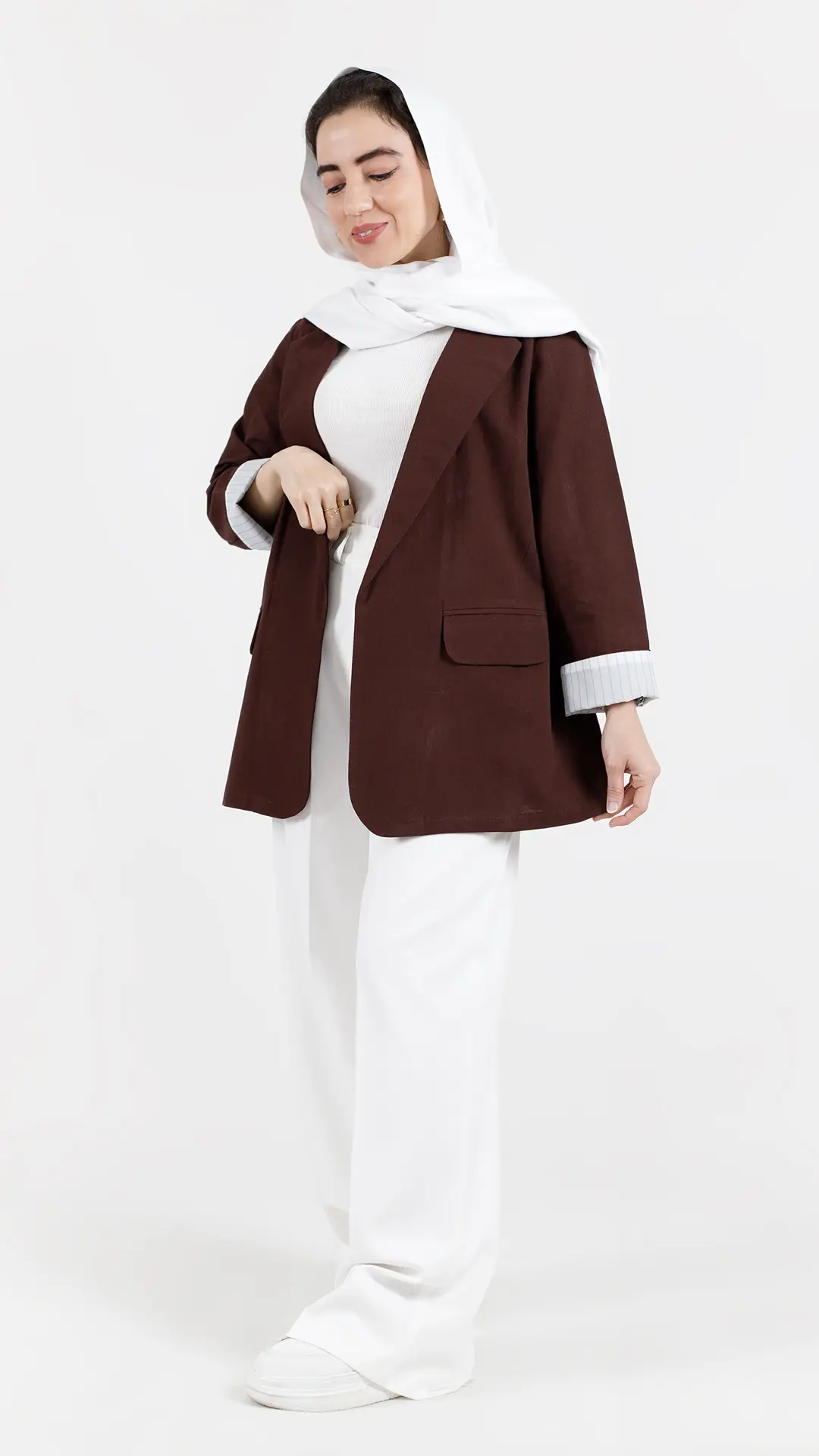 کت آستردار پاییزه با جنس کتان کجراه، یه انتخاب خاص برای روزای خنک پاییزه 🍂