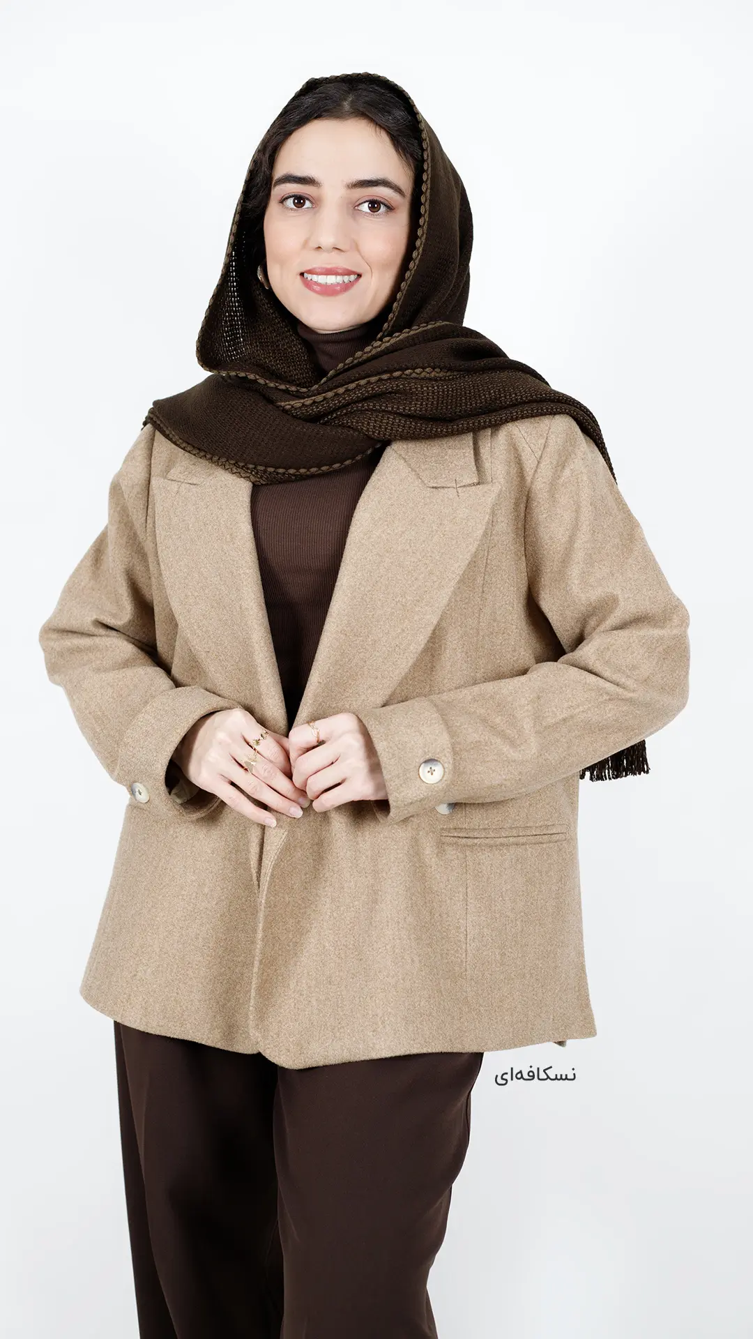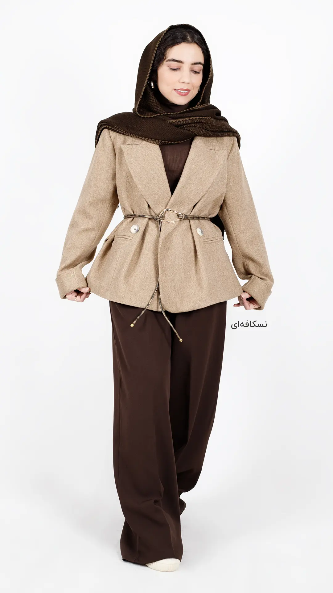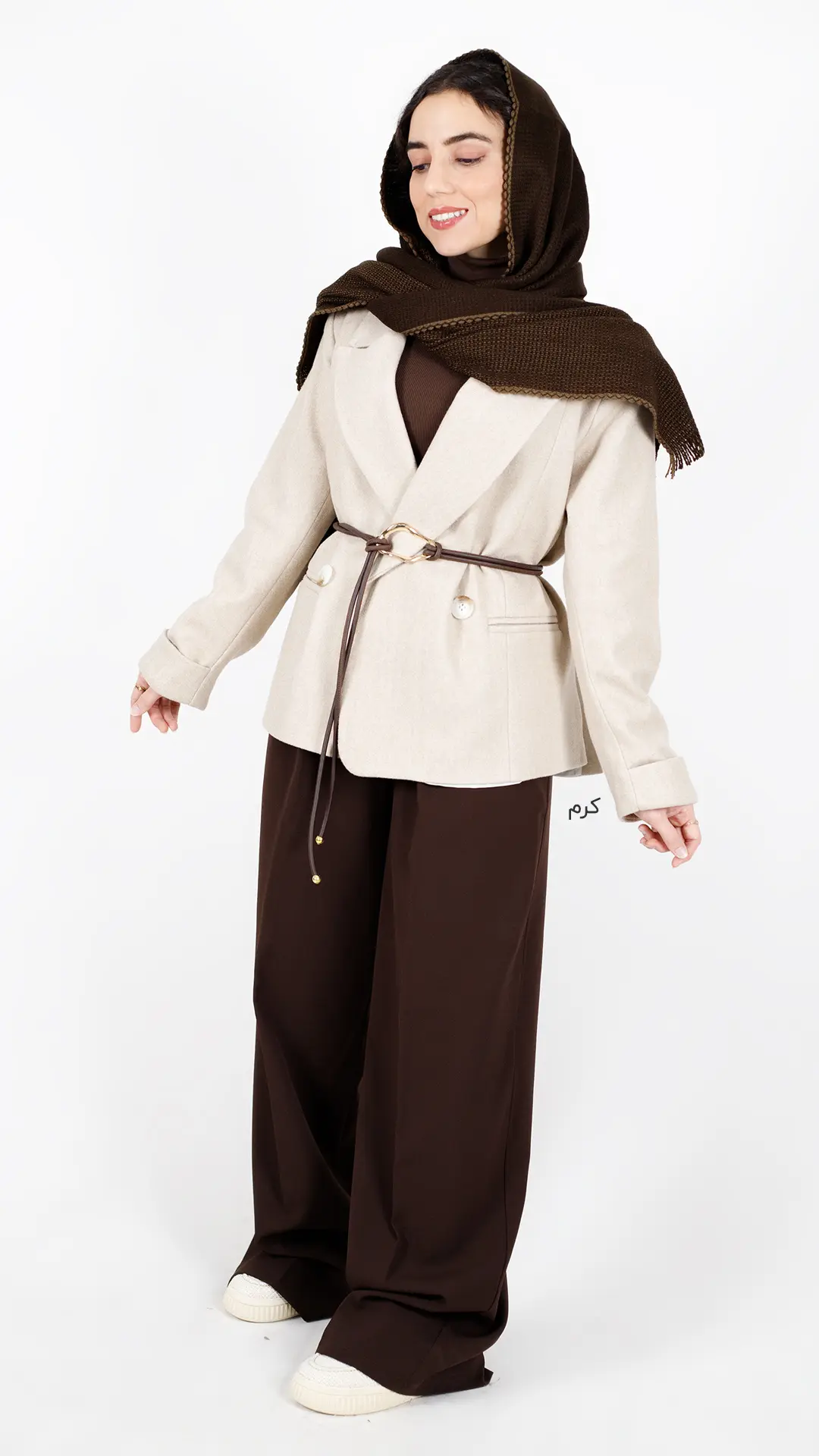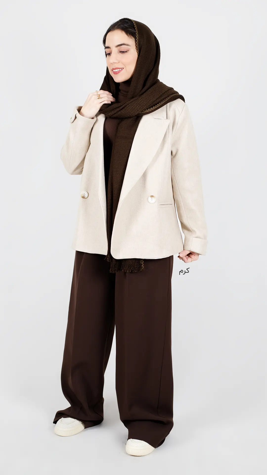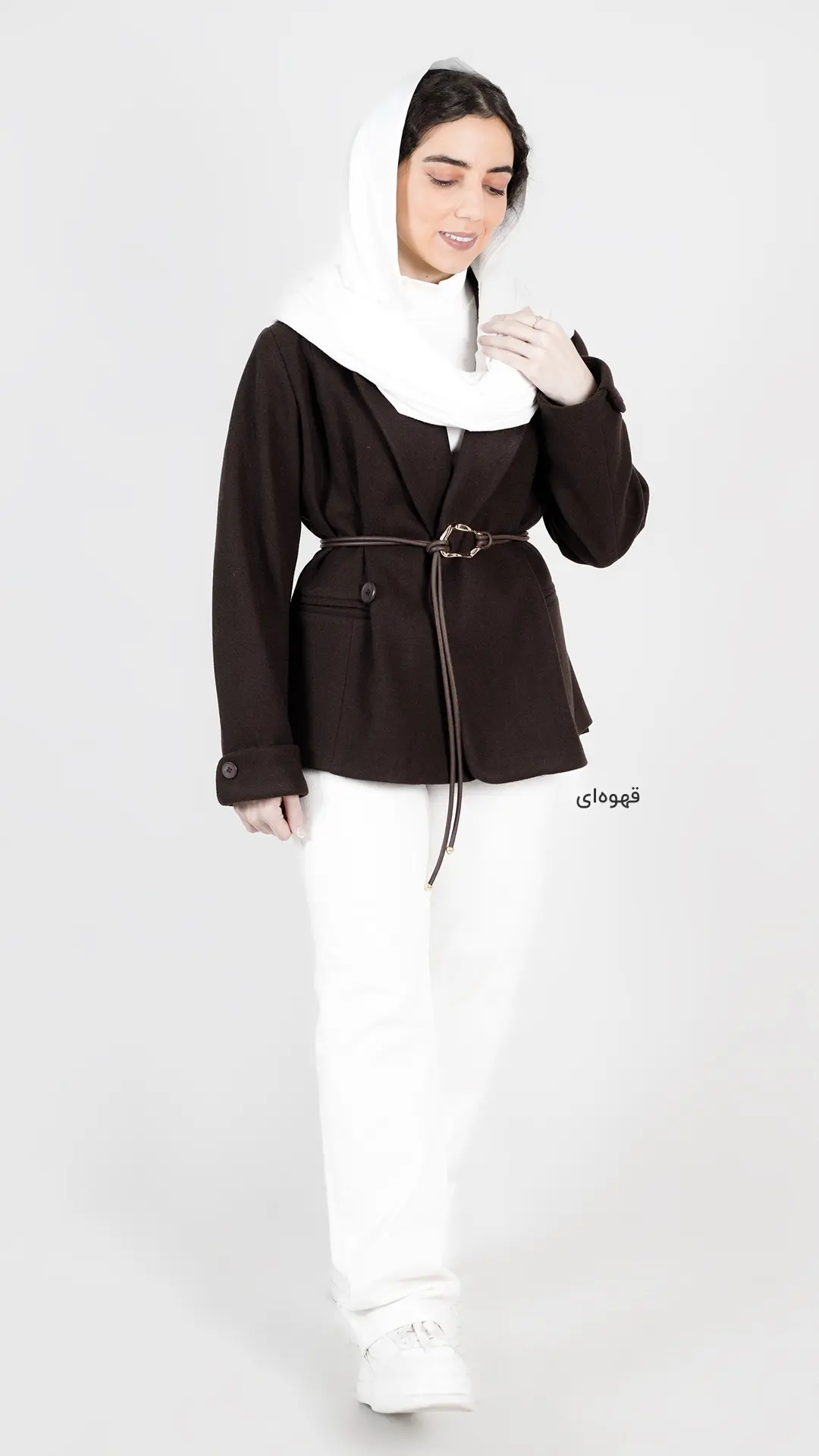 این کت کوتاه قهوهای یه انتخاب عروسکی و جذابه که به استایل شما حال و هوای پاییزی و زمستونی میده.