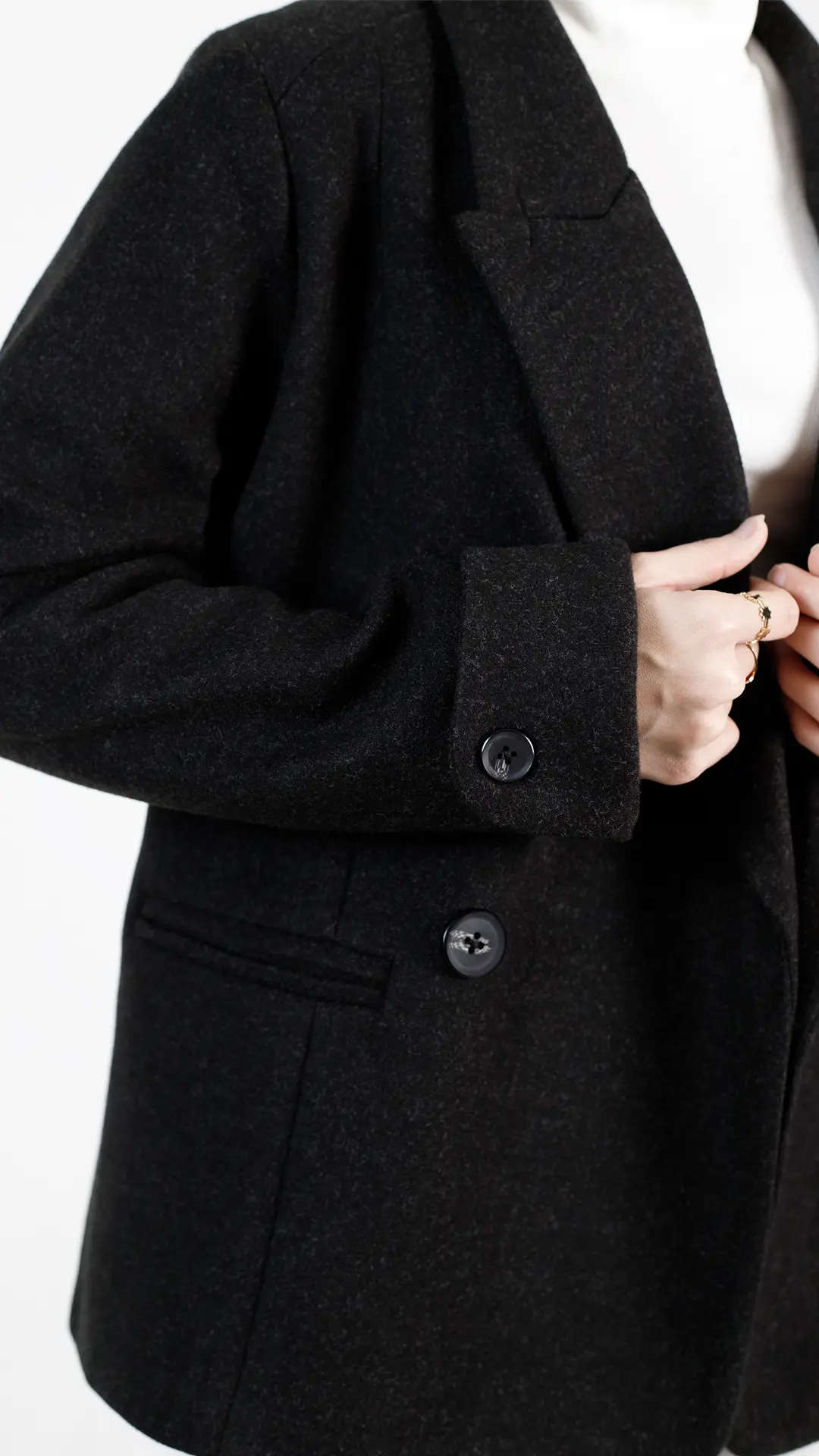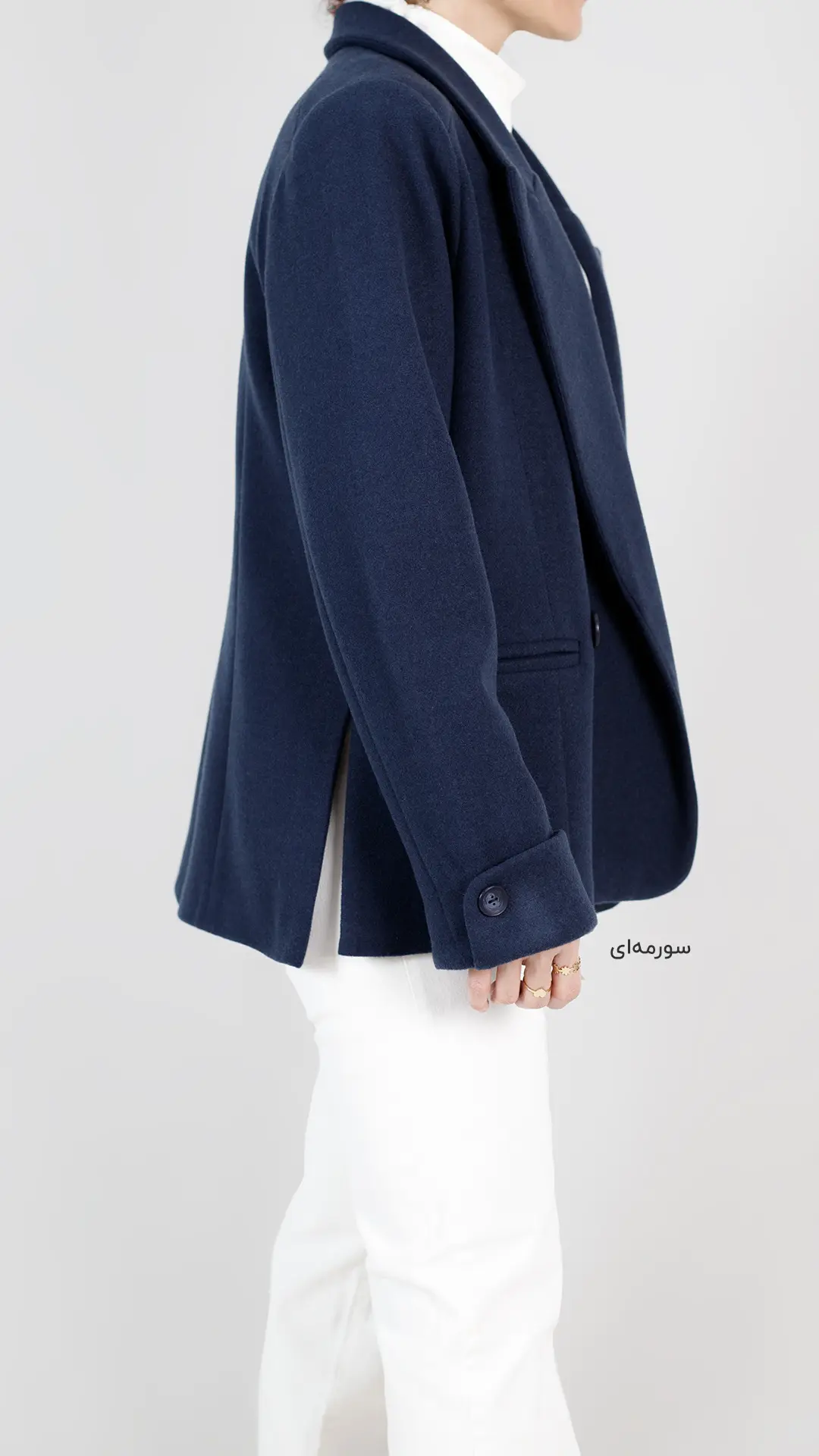 چاکهای جذاب کار و سرآستینهای دکمهخور و برگردان دوختشده، جلوهای خاص به کت داده.