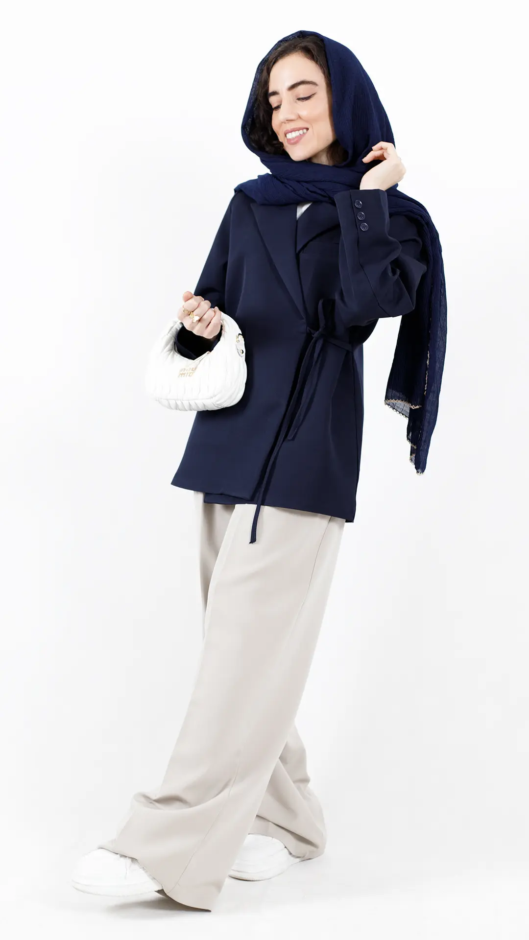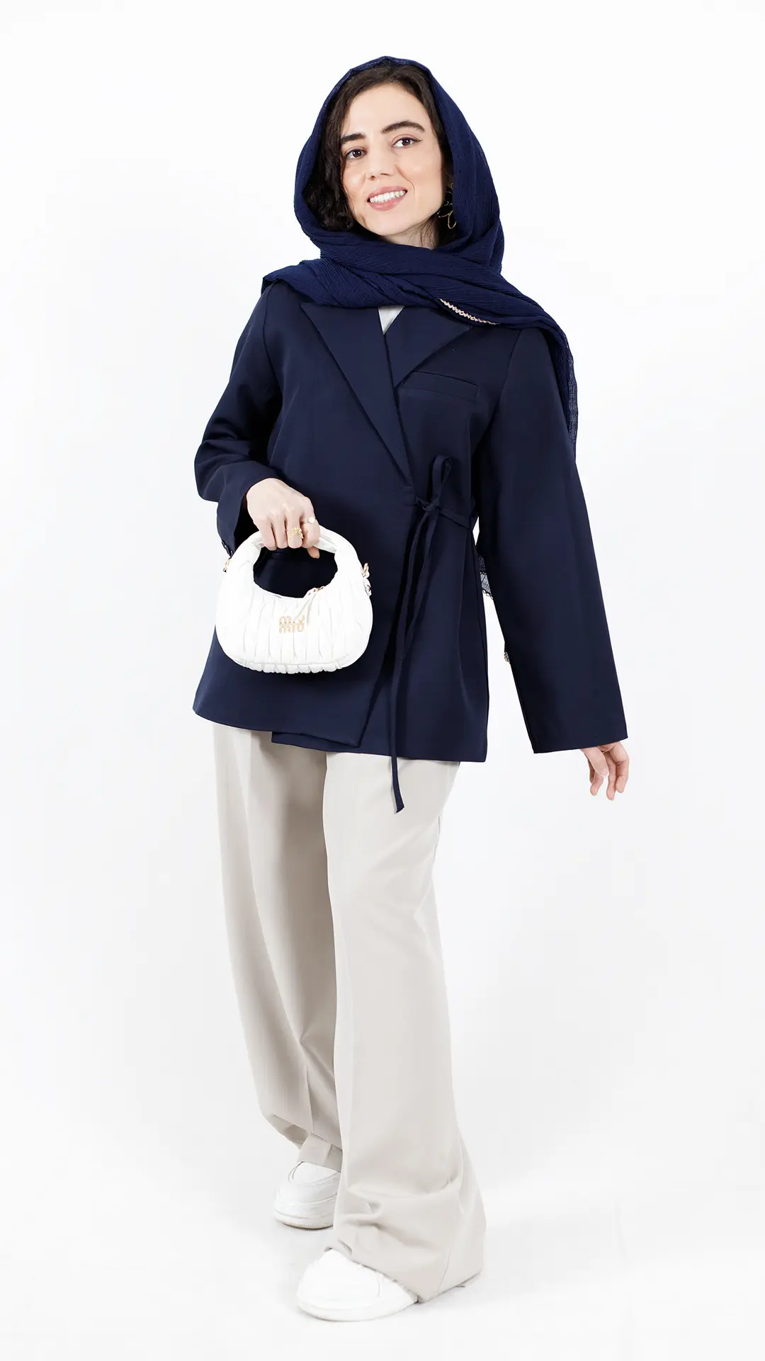 کت سفید جلو دکمه بیسکویتی
