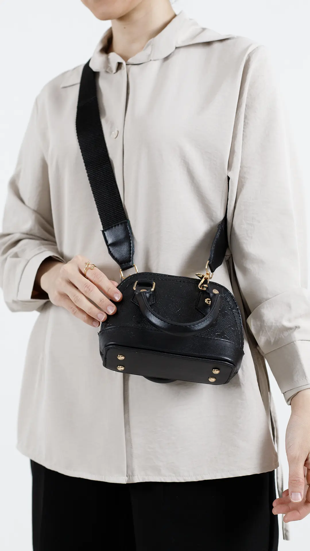 بند کیف طوری طراحی شده که هم روی دوش و هم دستی قابل استفاده است و انعطاف خوبی برای استایل روزمره ایجاد میکنه